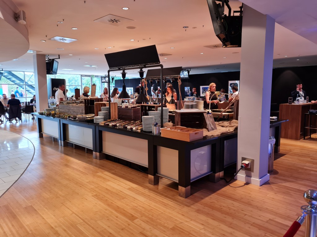 Eine knappe Stunde hatten wir Zeit bis zum Anpfiff, sodass wir zwischen den Spielerfrauen und Familien erstmal feudal gespeist hatten, bis wir uns auf die Tribüne begaben.