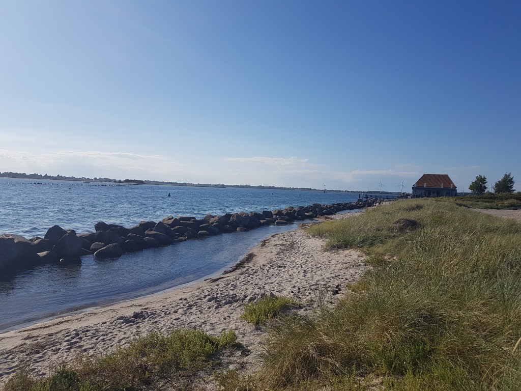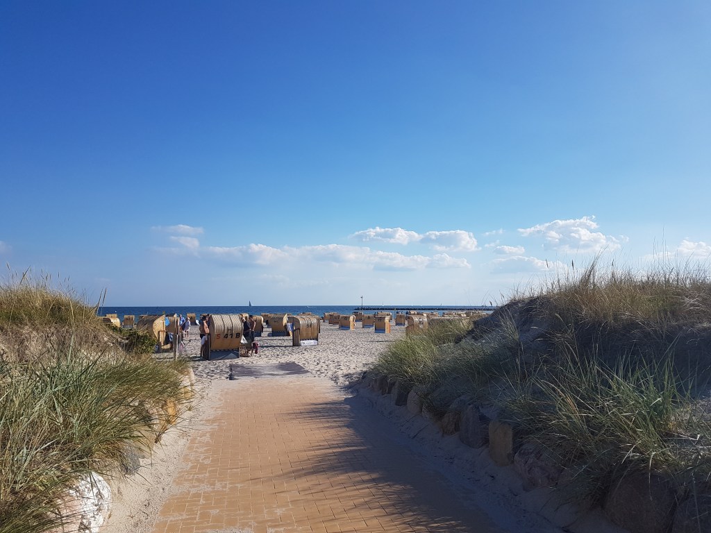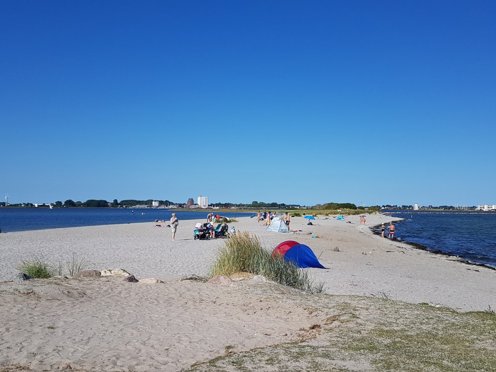 Das Essen ließ glücklicherweise nicht lange auf sich warten, sodass ich anschließend noch gut meinen Zug um 14 Uhr 13 nach Fehmarn erwischte, wo ich 16 Uhr 40 ankam und mich Frank in Empfang nahm. Mit dem Auto brachte er mich vom Ort Burg auf Fehmarn ins nahe gelegene Burgtiefe. Dort hatte er sich seit vergangenem Mittwoch in ein Appartement direkt am Strand eingemietet. Für die nächsten drei Tage werde ich sein Mitbewohner sein. Während Frank nochmals zum Theoriekurs Windsurfen lief, ging mein Weg zum Strand – Sonne tanken.