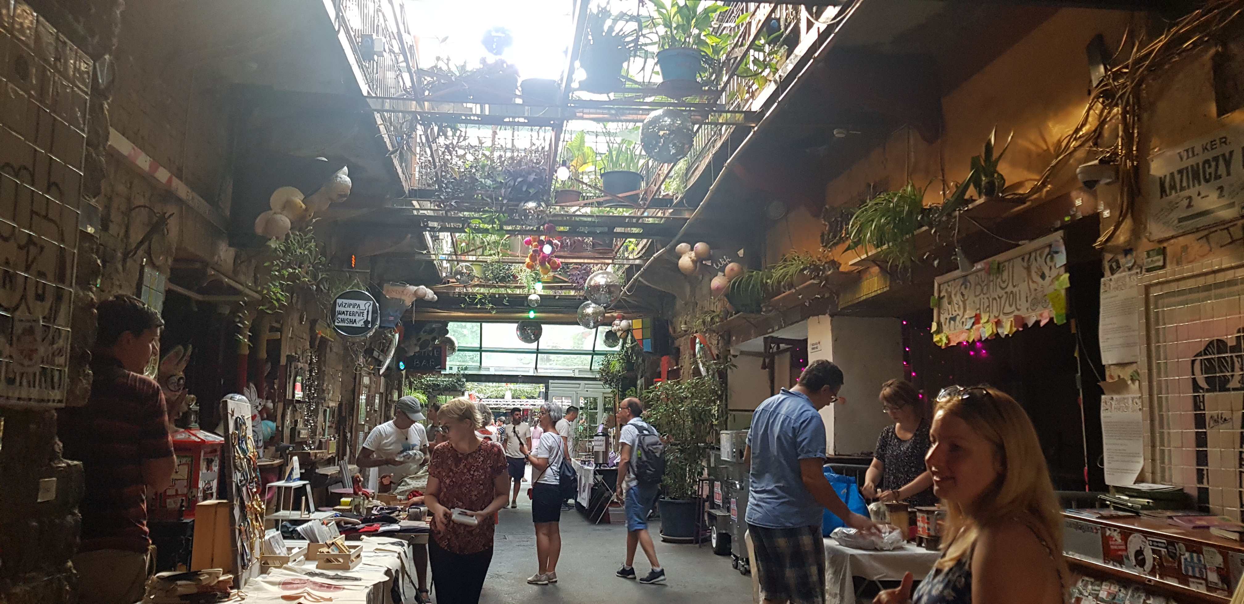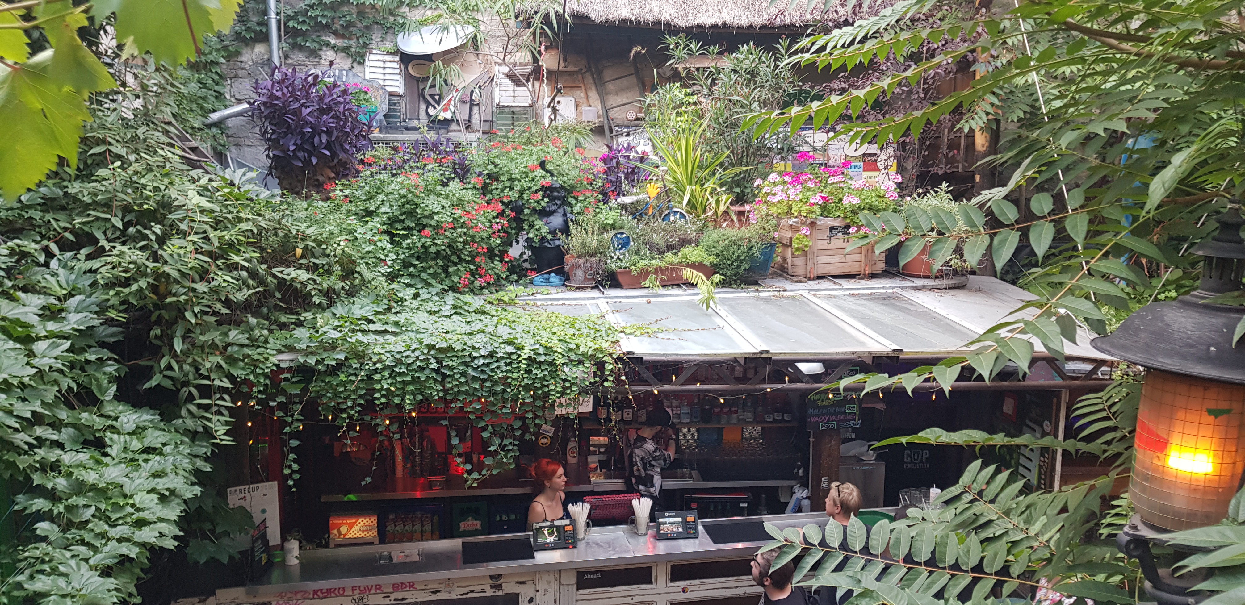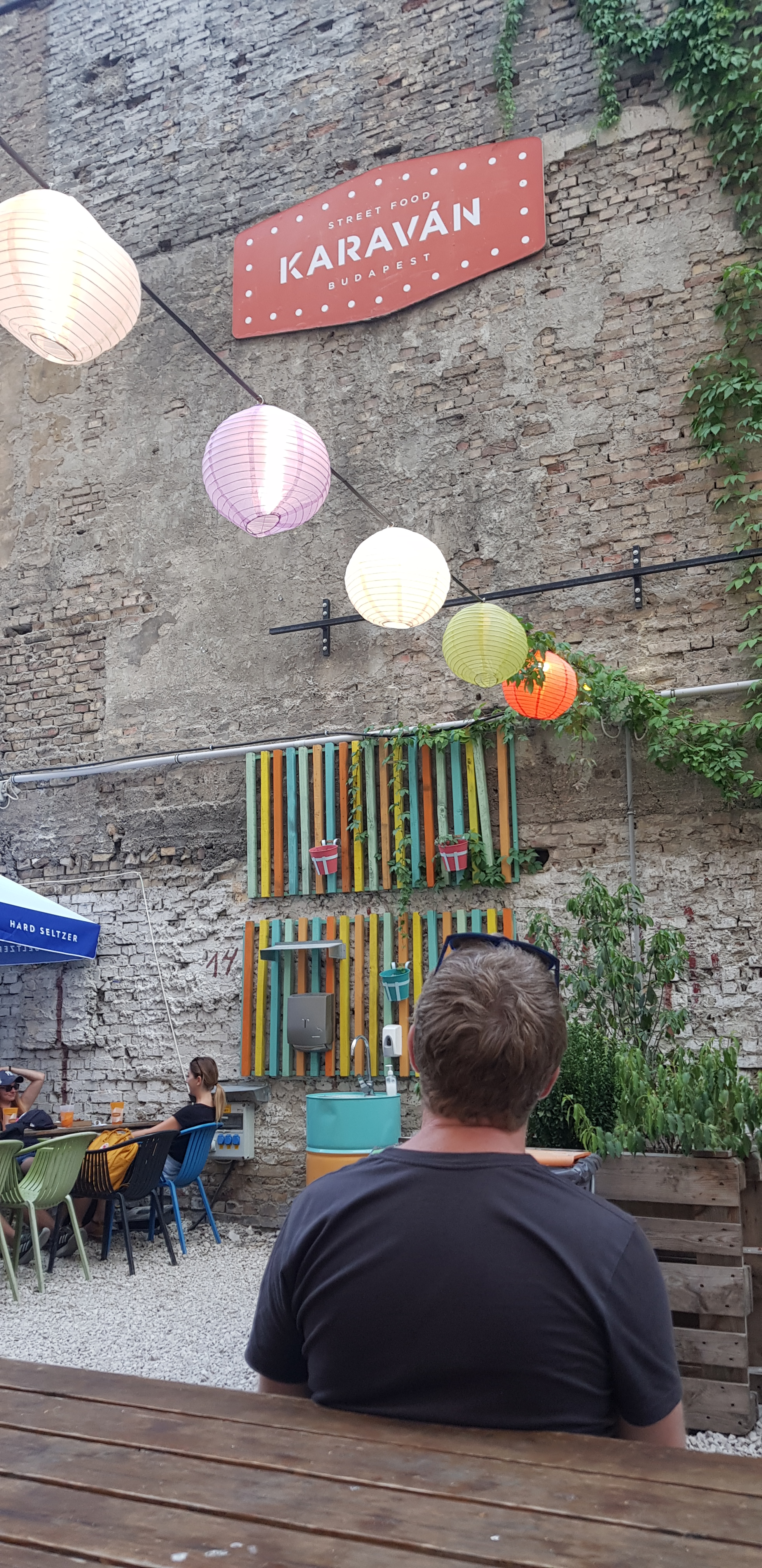 Nach Speis und Trank schlenderten wir noch etwas an der Donau mit Blick auf Buda und durch den südlichen Innenstadtbezirk von Pest. Einen Absacker gab es bei erneuter Bullenhitze im Szimpla Kert.