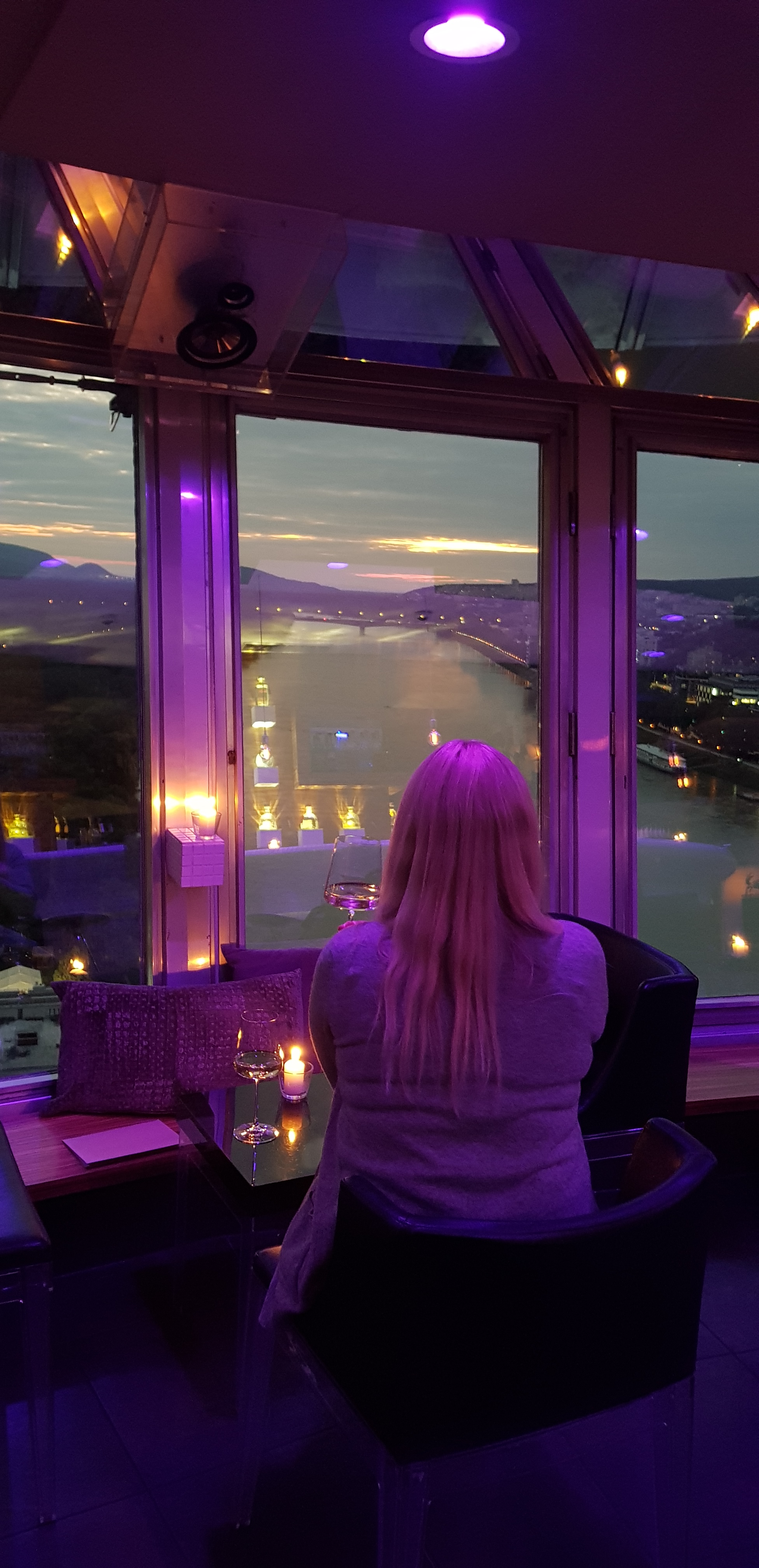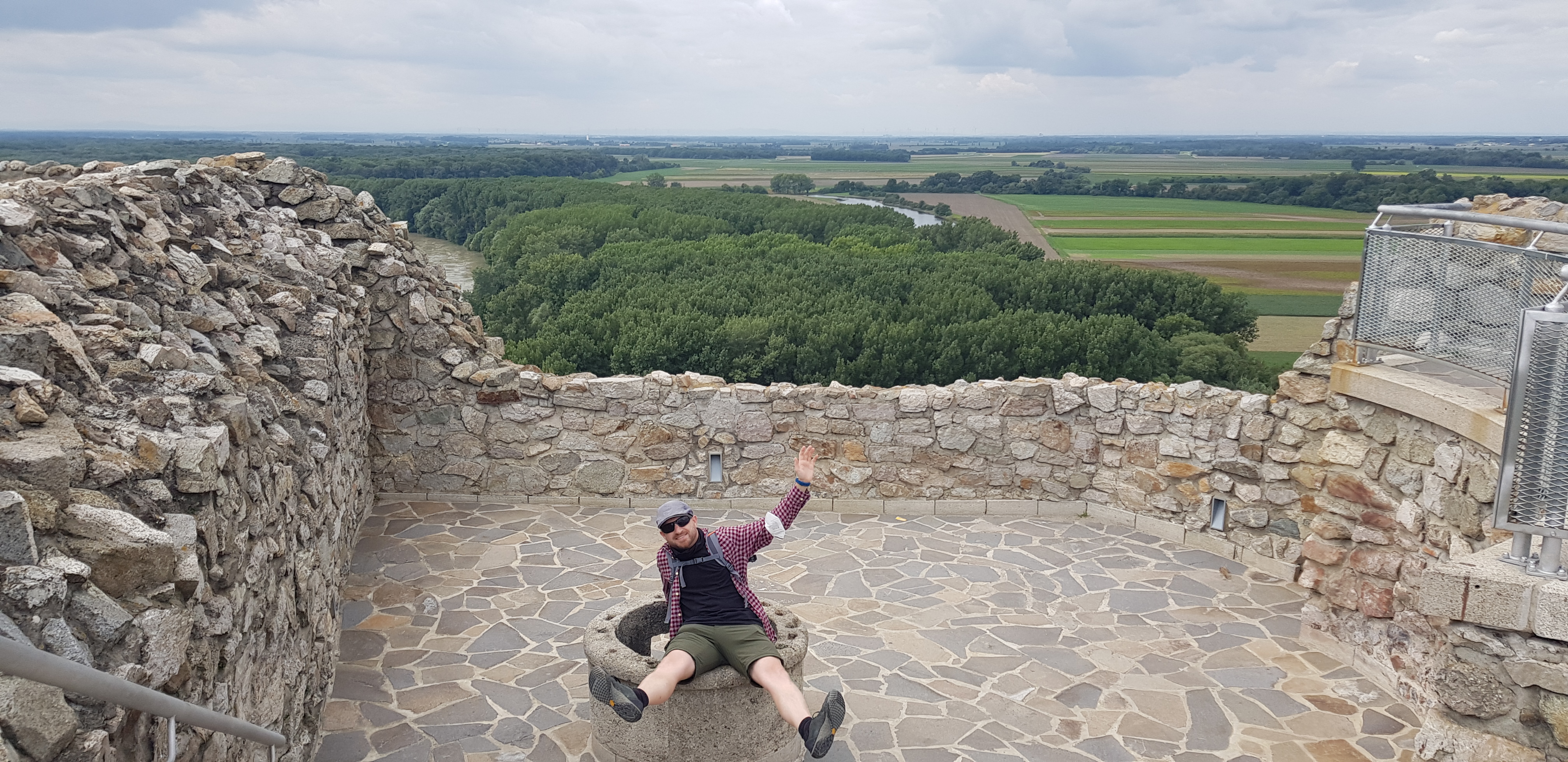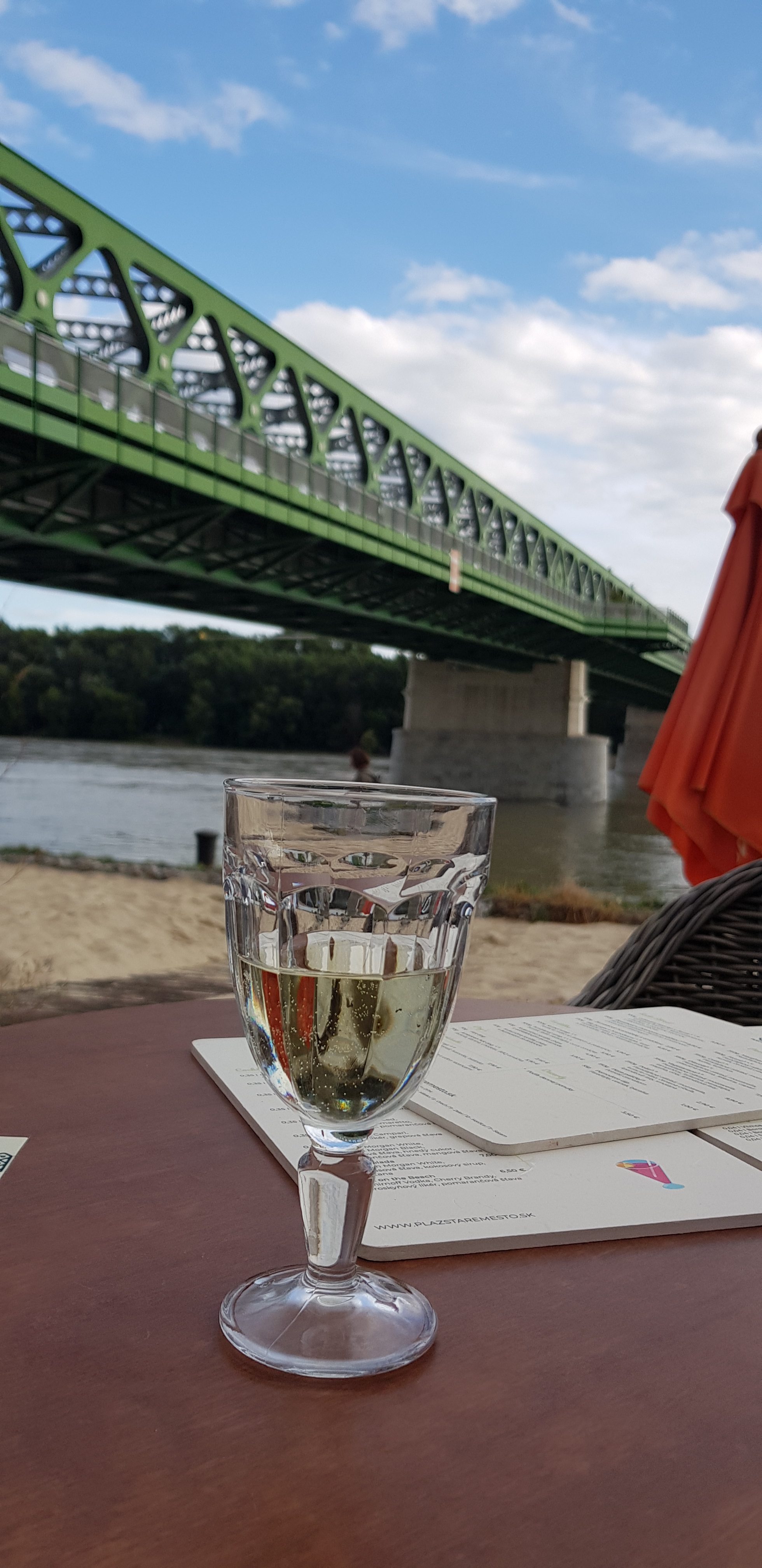 Die ganze Strecke von rund 15 Kilometern mussten wir natürlich nach Burgbesichtigung mit Ausstellung zur Burggeschichte zurück und belohnten uns erneut mit traditioneller slowakischer Küche. Daraufhin konnte einer von wenigen kurzen Powernaps in den letzten Wochen eingelegt werden, bevor wir uns auf den Weg zum UFO begaben, um dieses Mal den Blick bei Sonnenuntergang auf Donau, Altstadt und die Bratislaver Burg zu werfen. Der Aussichtsturm ist 95 Meter hoch und bietet bei gutem Wetter eine herrliche Aussicht bis zu 100 Kilometer ins Umland. Im 360°-Restaurant unter der Aussichtsplattform durften wir feststellen, dass auch die Slowaken guten Wein keltern können.