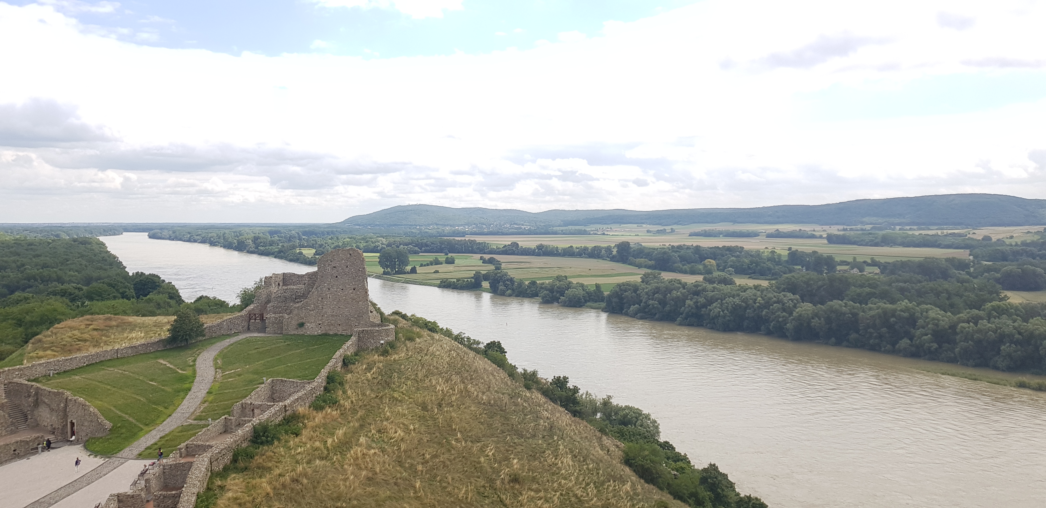 Gegen 11 Uhr haben wir uns Mountainbikes ausgeliehen und radelten erst an der Donau, dann aber leider, aufgrund des Hochwassers, mehr auf der Bundesstraße, die ebenfalls als Radweg ausgezeichnet war, entlang zur Burgruine Devin.