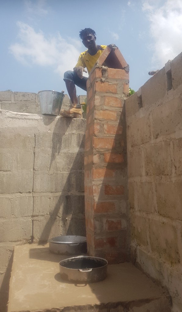 07.10.2021 – Meine Schmerzlinderung war nur von kurzer Dauer. Momentan kann ich mein Bein nicht ganz durchstrecken. Die Schwellung an der Wade hat erneut etwas zugenommen. Alles spannt, brennt und schmerzt. Allein mit der Cortisonsalbe wird es wohl nicht getan sein. Ich sollte somit bald einen Arzt aufsuchen. Zuerst steht aber das Finishing für den Ofen in Brikama an. Ich will die weiteren Arbeitsschritte lernen und sehen, wie der Ofen fertiggestellt wird. Dort im Compound eingetroffen, begegnete mir Aminat, die sich erst nach mir floskelhaft erkundigte und sich danach meiner Infektion annahm. Es stellte sich raus, dass sie von Berufs wegen Krankenschwester ist. Ich hatte ein gutes Gefühl bei ihr und sie drückte mir beherzt ziemlich viel eiterndes Sekret aus dem Einstichsloch. Leider tat sie dies, ohne mein Desinfektionsmittel zu nutzen. Einen Mango-Wurm oder Sandfloh habe ich glücklicherweise nicht gesehen. Aber es könnte sein, dass noch nicht alles rauskam, da oberflächlich eine zu starke Verhärtung vorherrschte. Ein Antibiotikum und die Cortisoncreme hatte ich dabei und nehme dies weiter, um eine Lockerung rund um den Infektionsherd zu erzielen. Im Notfall muss ich selbst drücken, pressen, säubern, desinfizieren. Nach dem Eingriff fiel es mir leider noch schwerer zu stehen und zu laufen, weshalb ich keine große Hilfe auf der Baustelle war. Dummerweise stellte sich heraus, dass mir mein Körper als Reaktion auf das Antibiotikum mit einem Hautausschlag dankte. Ich würde sagen, wenn es einmal läuft, dann richtig. Immerhin kann ich vom Ofenbau nur Positives berichten.