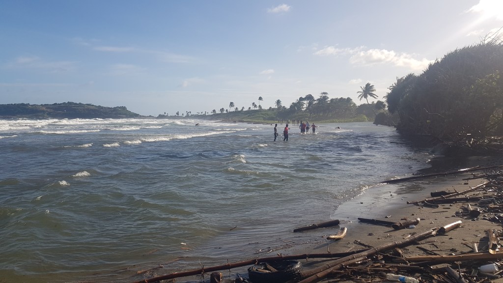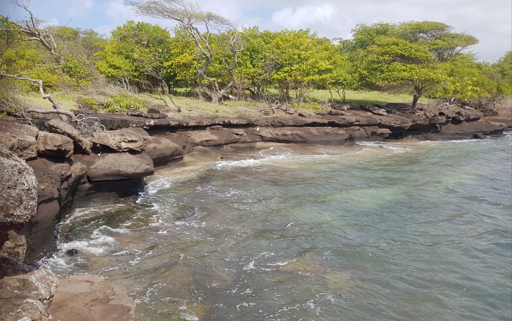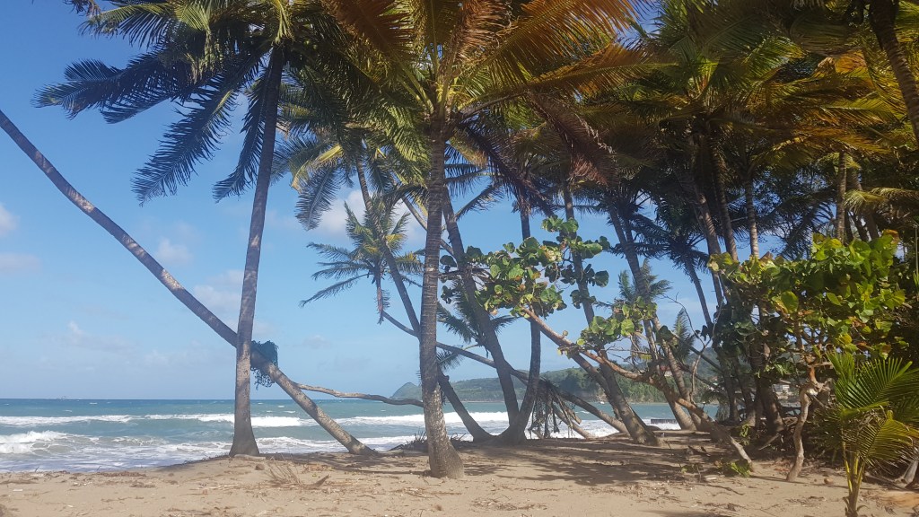Mittags unternahm ich eine Wanderung mit Ziel Gran Anse Beach. Dazu musste ich vom Yard aus erstmal durchs Gestrüpp über die Bergkuppe wandern und ein paar Bullen ausweichen, bevor ich durch die Vororte zum wunderbar feinen Sandstrand kam. Dort gönnte ich mir auf dem Spice and Craft Market eine Stärkung und verbrachte etwas Zeit am Strand.