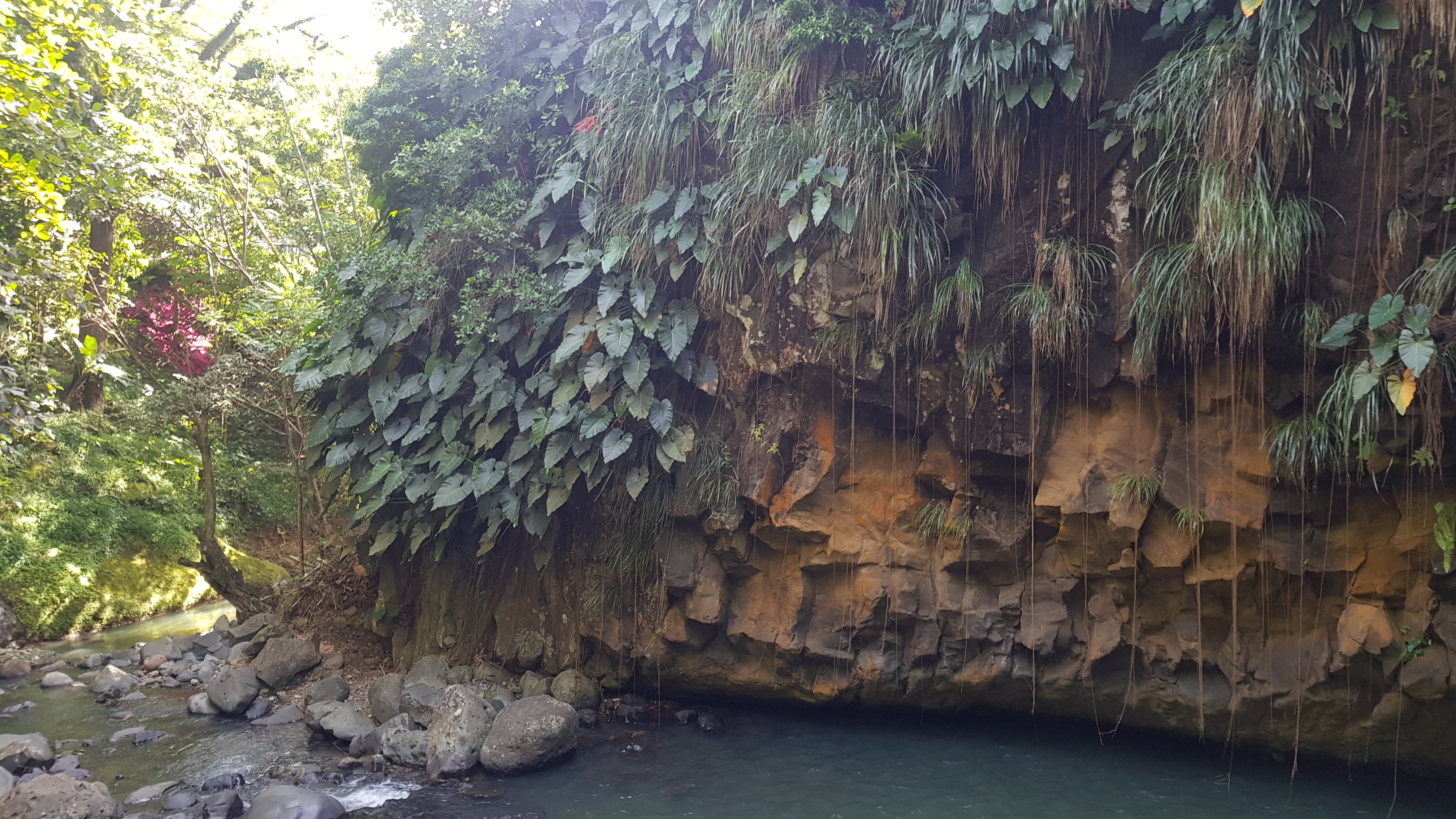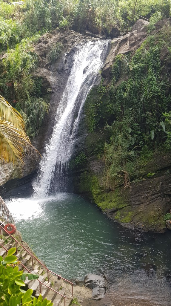 18.12.2021 – Es sollte ein sehr ereignisreicher Tag nach gemächlichem Start werden. Wir wollten an einem Hash teilnehmen, der dieses Mal im Osten der Insel stattfand. Den Anfahrtsweg verbanden wir mit einer kleinen Inselrundfahrt. Zwar ist Grenada mit einer Länge von 31 km, sowie in der Breite 16 km nicht gerade weitläufig, allerdings sind die einspurigen Straßen nicht im besten Zustand und man quält sich über zahlreiche Serpentinen die Berge rauf und wieder hinunter, sofern man nicht die Küstenstraße ganz außen herum nehmen kann. Wir hatten beides. Unseren 1. Stopp legten wir an den Concord Waterfalls ein. An diesem Wasserfall konnten wir Klippenspringern zusehen.