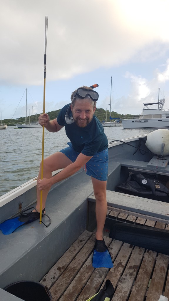Im Yard gab es dann ein Erfrischungsgetränk und man findet einfach immer jemanden, mit dem man sich austauschen kann. Auf dem Rückweg probierte ich, ins karibische „Horn“ zu stoßen und habe mir das tägliche Üben auf die Fahne geschrieben. Anschließend durfte ich das Dinghi bis zur „Maria Rosa“ steuern.
