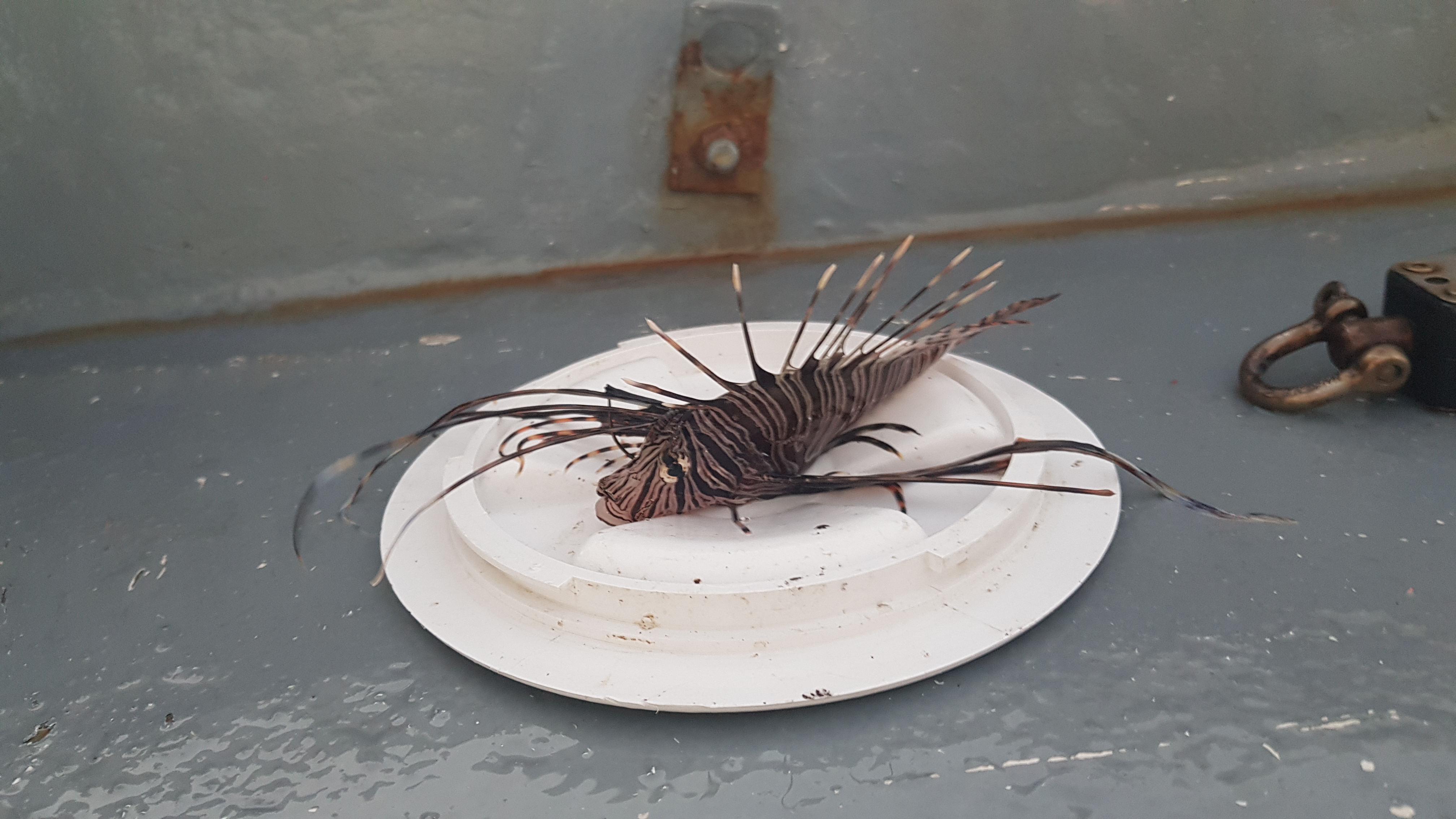 Danach starteten wir den nächsten Versuch, einen Lionfish zu fangen und Steffen erlegte auch einen, der als Katzenfutter für Perkins sein Ende fand.
