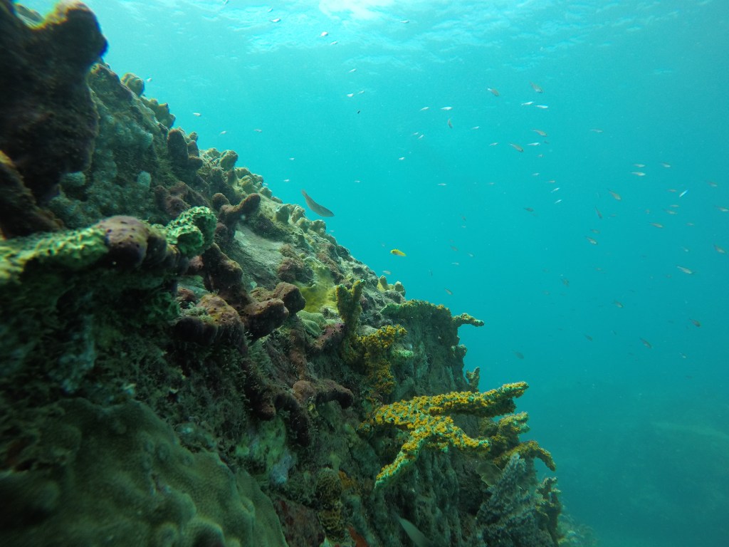 Nachmittags fuhren Steffen und William mit mir zum Speerfischen an ein Wrack und später zu einen Riff hinaus. Fangziel sollte der ursprünglich nicht hier heimische Lionfish sein. Ein aggressiver Räuber, der den heimischen Fischbestand dezimiert und somit die karibischen Fischarten gefährdet. Leider war die See etwas trüb und wir hatten kein Glück. Dennoch konnte ich beim Schnorcheln das Riff und seine Artenvielfalt bestaunen. Ich war unvorsichtig und zog mir ein paar Blessuren zu. Das Unterwasserschnorcheln wird meine nächste Trainingseinheit werden.