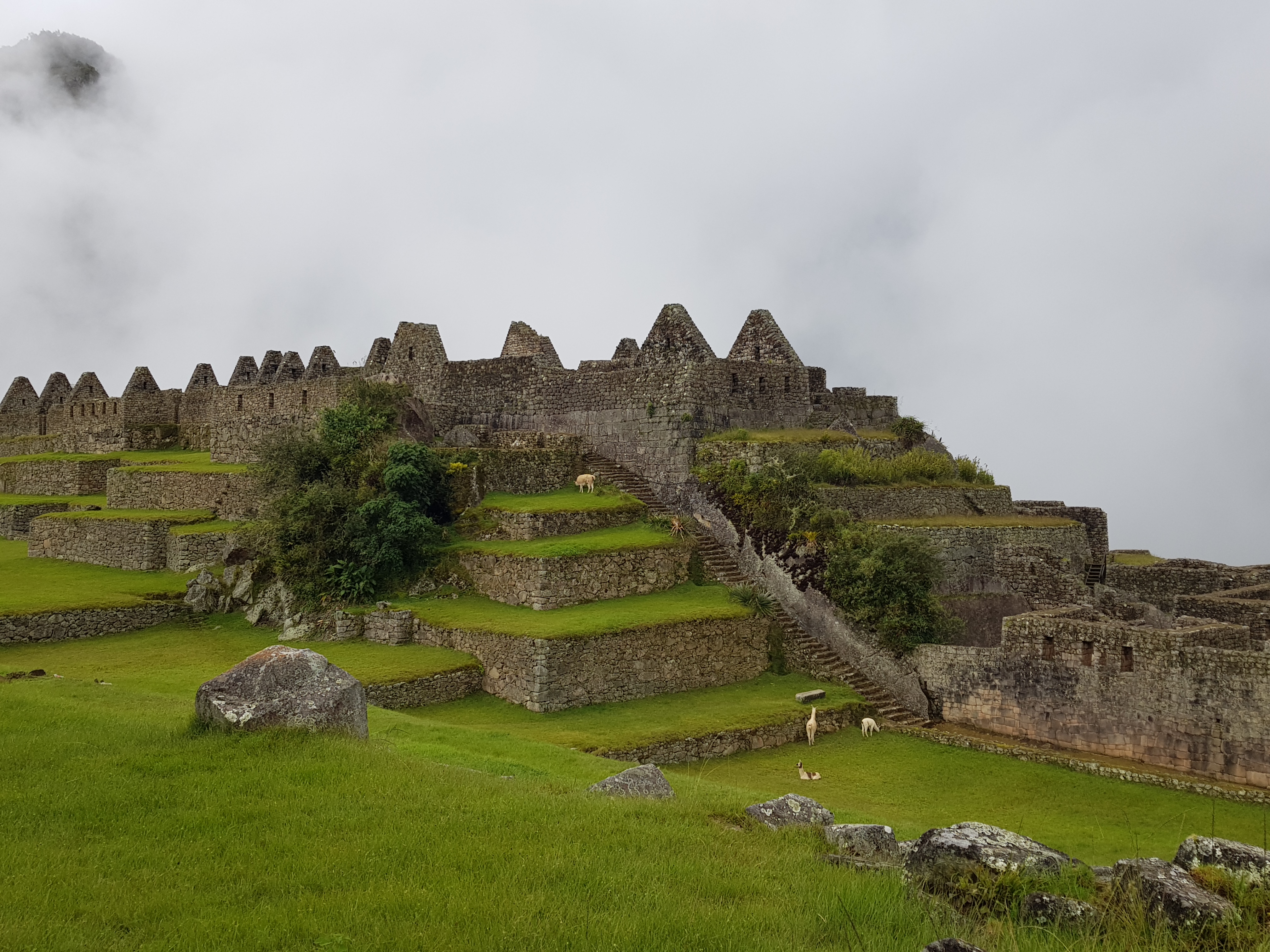 Nach 2 Stunden Warten machte sich die Nervosität bei Nils und Katharina breit und mein Zeitfenster wurde ebenso immer kleiner. Sie hatten eine geführte Tour gebucht, die um 11 Uhr startete und ich sollte um halb 12 am Haupteingang sein, um meinen Guide Ederth zu treffen. Am Eingang sagte mir die Frau an der Kasse, dass ich den Rundweg 3 in 30 Minuten laufen könne, weshalb ich dann ebenso um 11 Uhr unten sein wollte. Dennoch war es ein Hadern: Bleiben mit einer klitzekleinen Chance, die Inkaanlage vom Berg aus zu sehen oder den Dreierweg noch laufen zu können. Hatte ich den Aufstieg in einer Stunde geschafft, erhoffte ich mir in 30 Minuten unten zu sein. Der Ranger war auch nicht mehr zuversichtlich, weshalb ich mich nach 165 Minuten Hoffen aufmachte und wie sonst nur mein Kumpel Tom in Irrläufer – Manier den Berg runterjoggte. Bisweilen war es brenzlig, nicht wegzurutschen und bei den engen Stufen machte ich etwas langsamer. Nach rund 90 % des Weges rief mich mein Guide an. Er würde die Tour gerne vorverlegen und ich solle um 11 Uhr am Haupteingang sein. Wenig erfreut und mit dem Gedanken, dass ich den 3er – Rundgang nicht laufen kann, beeilte ich mich weiter. Wie von mir geschätzt, benötigte ich eine halbe Stunde. Jedoch klaute mir Ederth dann die Möglichkeit, eben diesen weiteren Rundweg zu gehen. Ich war angepisst. Den Rest der Gruppe hatte er mittlerweile einem anderen Guide mitgegeben und wir machten uns auf. Meine Stimmung war im Eimer. Bis dahin hat der Machu Picchu vieles von seinem Mythos bei mir eingebüßt. Nun waren wir zur Rush Hour unterwegs durch die Anlage. Es wimmelte von Menschen, die einfach nur auf Fotos für Instagram und Tiktok auswaren und an der Geschichte des Ortes kein wirkliches Interesse zeigten. Nun war ich in der Massenabfertigung angekommen, versuchte über Smalltalk die Stimmung zu kitten und bekam eine Einzelführung, bei der ich zumindest viele Fragen stellen konnte. Kurz nach dem klassischen Aussichtspunkt am Kopfe der Siedlung trat dann wieder Regen ein.