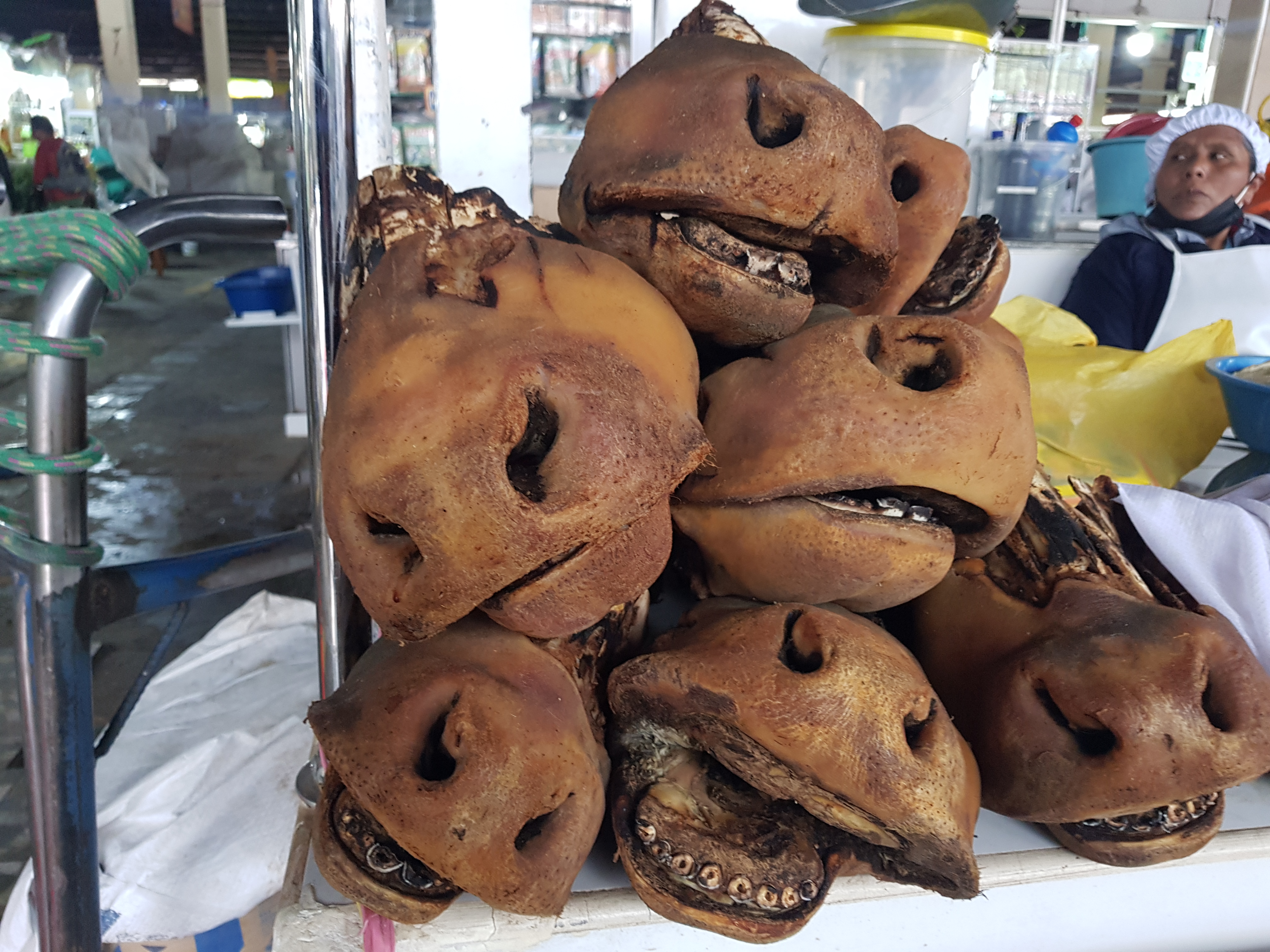 23.03.2022 – Mein Magen rumorte noch ziemlich, sodass ich meine Reiseapotheke schröpfte, viel Tee trank und mir Ruhe gönnte. Nachmittags trat ich einen Spaziergang durch das schöne Cusco an, traf kurz Mike, mit dem ich mich für abends verabredete und besuchte neben dem unspektakulären „Museo de Arte Contemporeano“ das angrenzende Schokoladenmuseum für eine kleine Verkostung. Schokolade ist ja schließlich auch Medizin. Daraufhin schlenderte ich über den Markt von San Pedro. Dort gab es wirklich alles für den Touristen oder die Locals: Kleidung, Nippes, Käse, Gewürze, Kräuter, Kokaprodukte, Obst, Gemüse, Fisch und neben Pferdeschbauzen ganze Rinderköpfe. Man konnte zusehen, wie Blutwurst gemacht wird und musste teils auch über das frische Blut am Boden waten. Das war schon ein bissel ekelhaft.