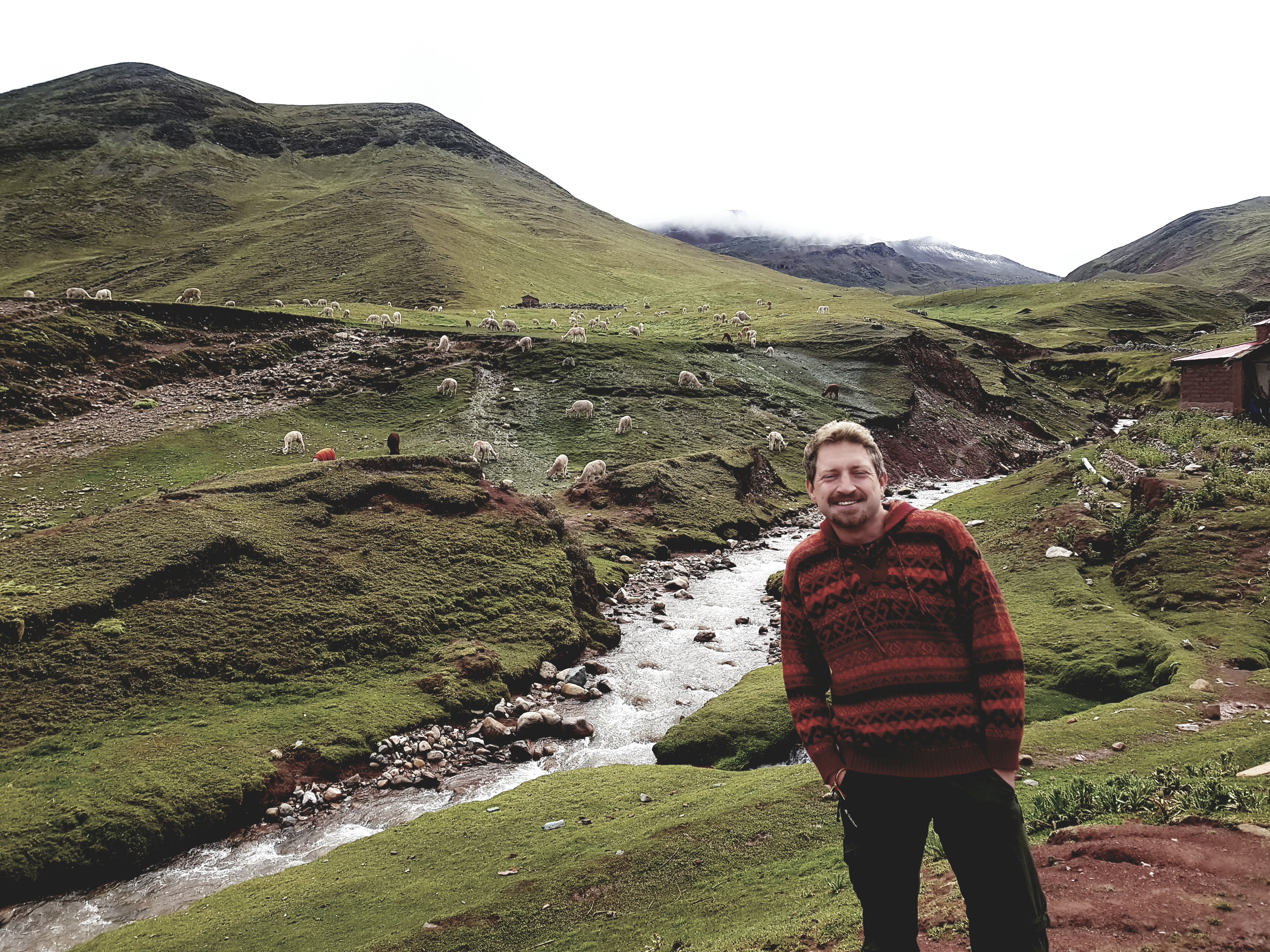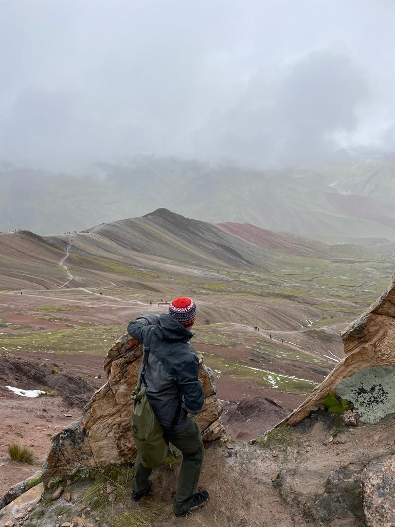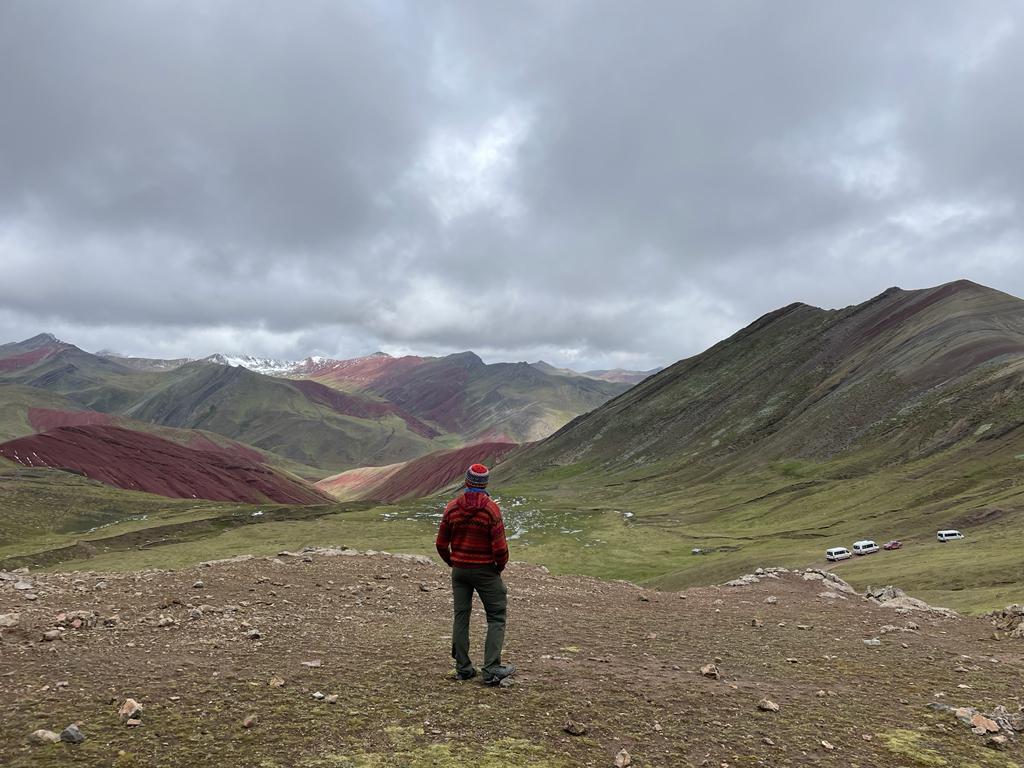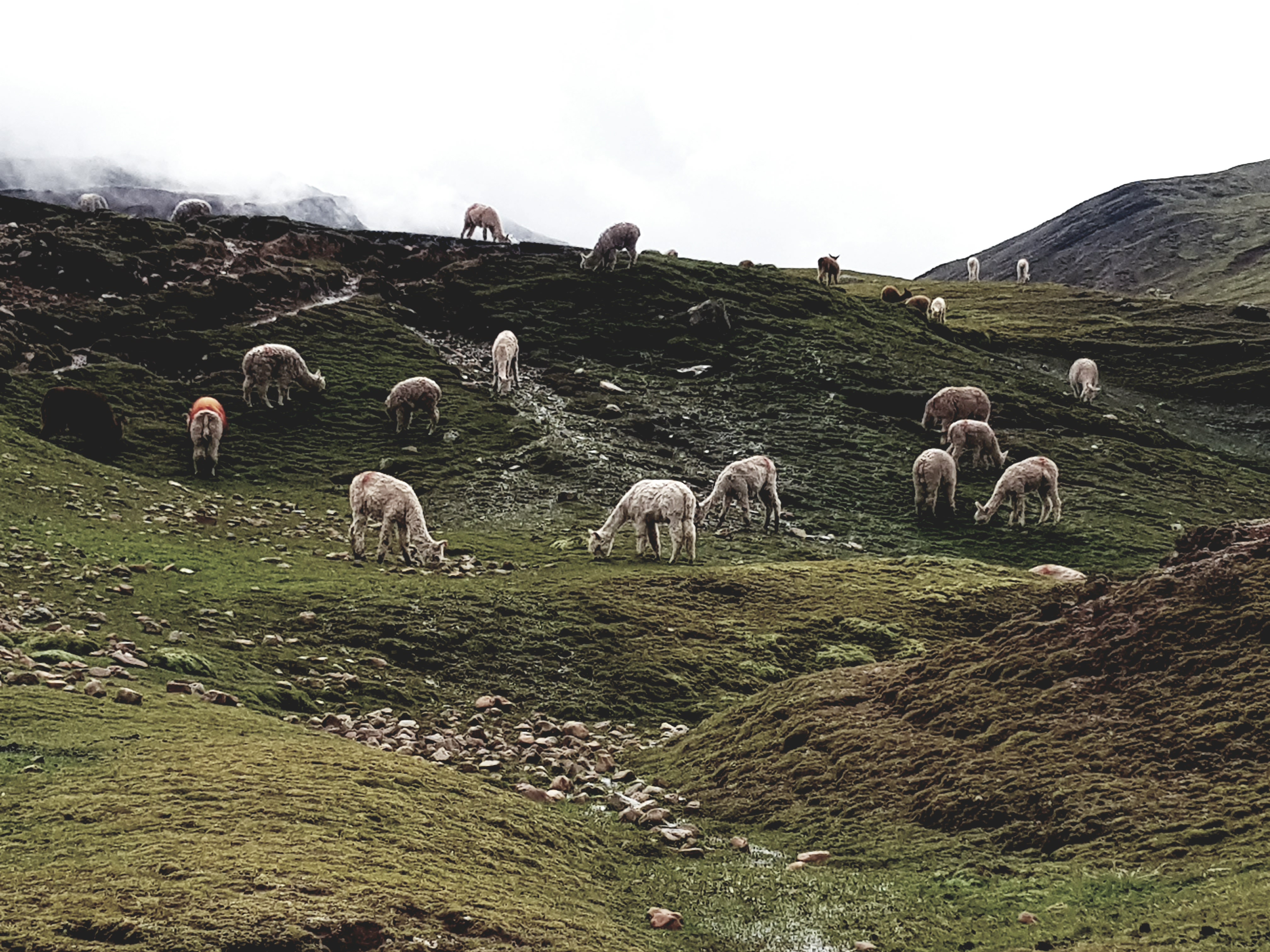 26.03.2022 – Um 4:58 Uhr klingelte das Handy, nicht der Wecker. Mein Guide Dora rief mich zum Einsammeln für die Tagestour. Gestern hatte man mir noch 5 Uhr 30 mitgeteilt, weshalb das Shuttle eine Extrarunde drehen durfte. Bis alle, darunter auch eine der Steffis, an Bord waren, war es kurz vor 6 Uhr. Die Fahrt, mit Frühstücksunterbrechung, ging zum „Palcoyo“, einer Gebirgskette mit drei Regenbogenbergen und einem „Felsenwald“, dem auf 5000 Metern Höhe gelegenen „Rock Forest“. Schon die lange Anreise dahin war traumhaft und ich konnte mich an den grün bewachsenen Bergen kaum satt sehen. Wenn dann zusätzlich eine Herde Lamas über die Straße läuft oder Alpakas am Hang grasen, hat mir das echt ein Lächeln aufs Gesicht gelegt.