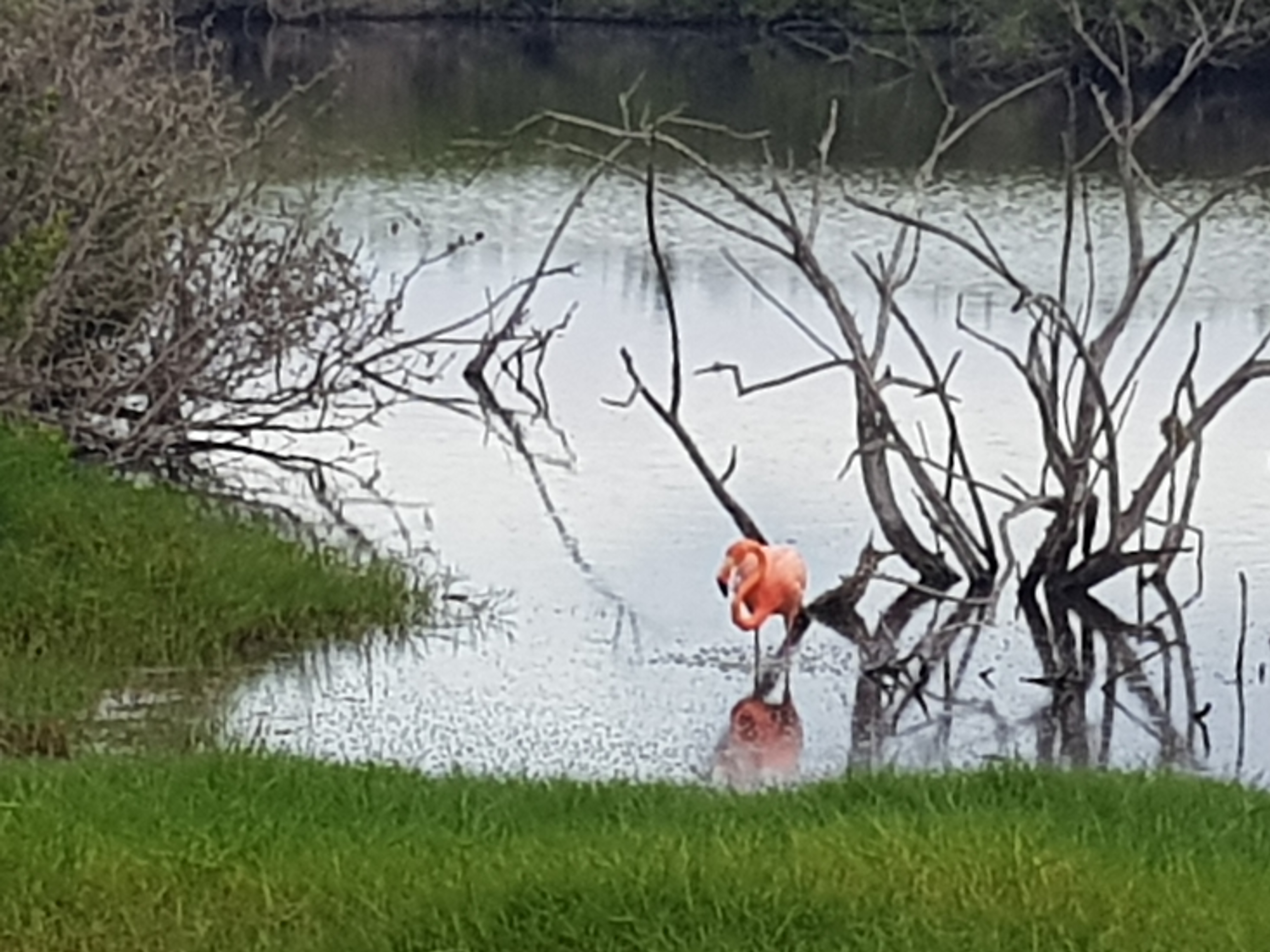 Danach gaben wir unsere Räder ab, gingen zum Nachmittagstisch, trafen Emma aus Irland wieder und unternahmen einen nächsten Spaziergang übers Moor zu Seen, in denen man Flamingos finden kann. Auf dem Hinweg (Isabella ist eine riesige Insel und doch ein Dorf) trafen wir zwei Mädels aus unserem Hostel in Santa Cruz, Isabell und Pauline, die auf der Suche nach den rosafarbenen Stelzenvögel weniger Glück hatten. Paul und ich fanden immerhin insgesamt 4 Flamingos an 2 Wasserstellen.