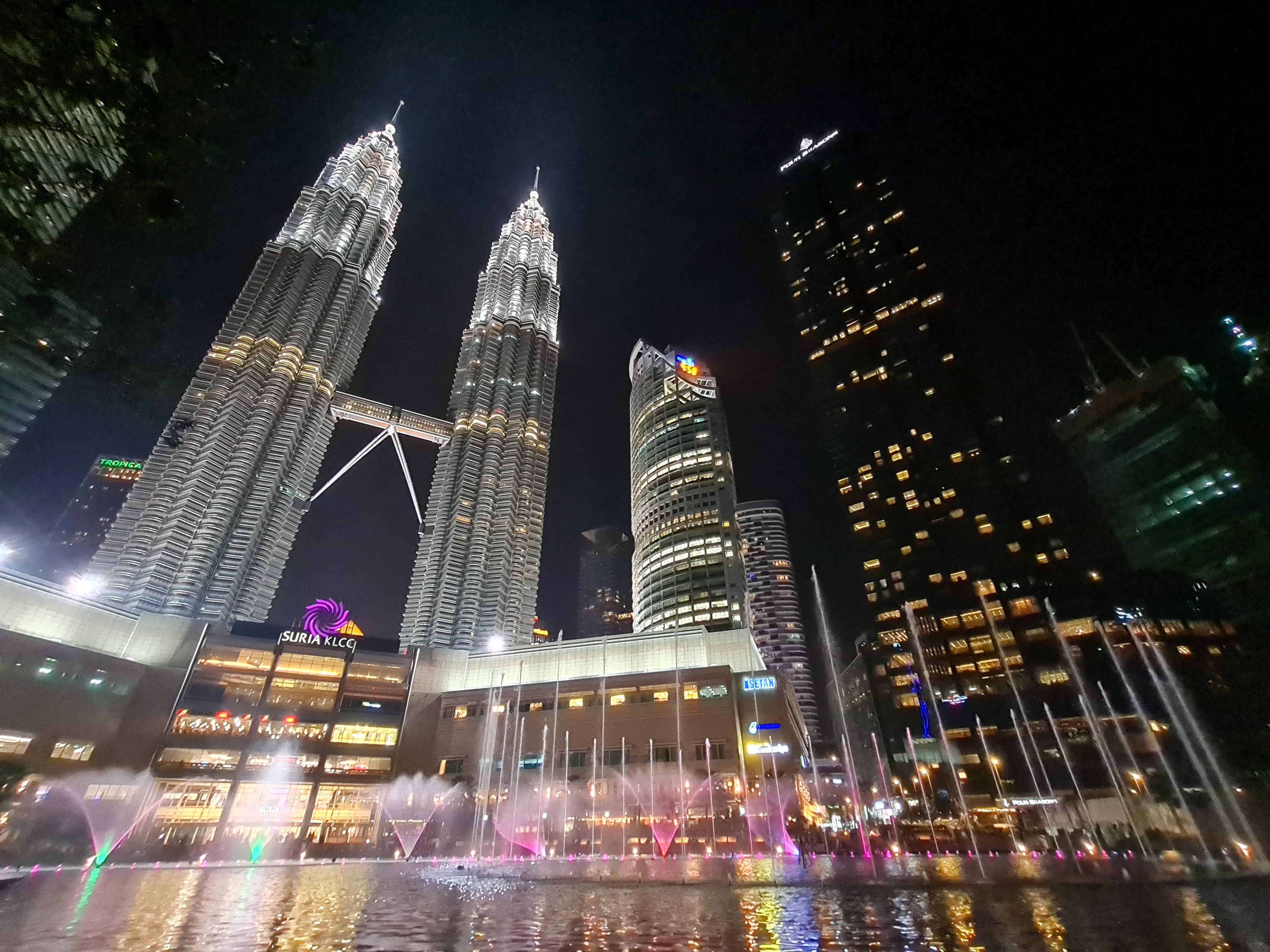 Atemberaubend, einfach atemberaubend. Was der Mensch alles schaffen kann, wenn er seine Energie positiv einsetzt. Und was mich neben der Architektur am meisten beeindruckte, als ich nach einer Verweildauer wieder unten war: Man hört keinen Lärm, weder vom Verkehr noch sonst wo her. Ebenso ist die Luft frisch, es gibt viele Grünflächen und ich fühlte mich in dieser für mich völlig fremden Metropole sicher und gut aufgehoben. So machte ich mich auf, die „Petronas Towers“ nochmals aus der Nähe zu sehen. Und nach jeder Straßenecke bis hin zu den Wasserspielen am Einkaufszentrum „KLCC Suria“, sahen sie beeindruckender aus. Verzeiht mir die Schwärmerei.