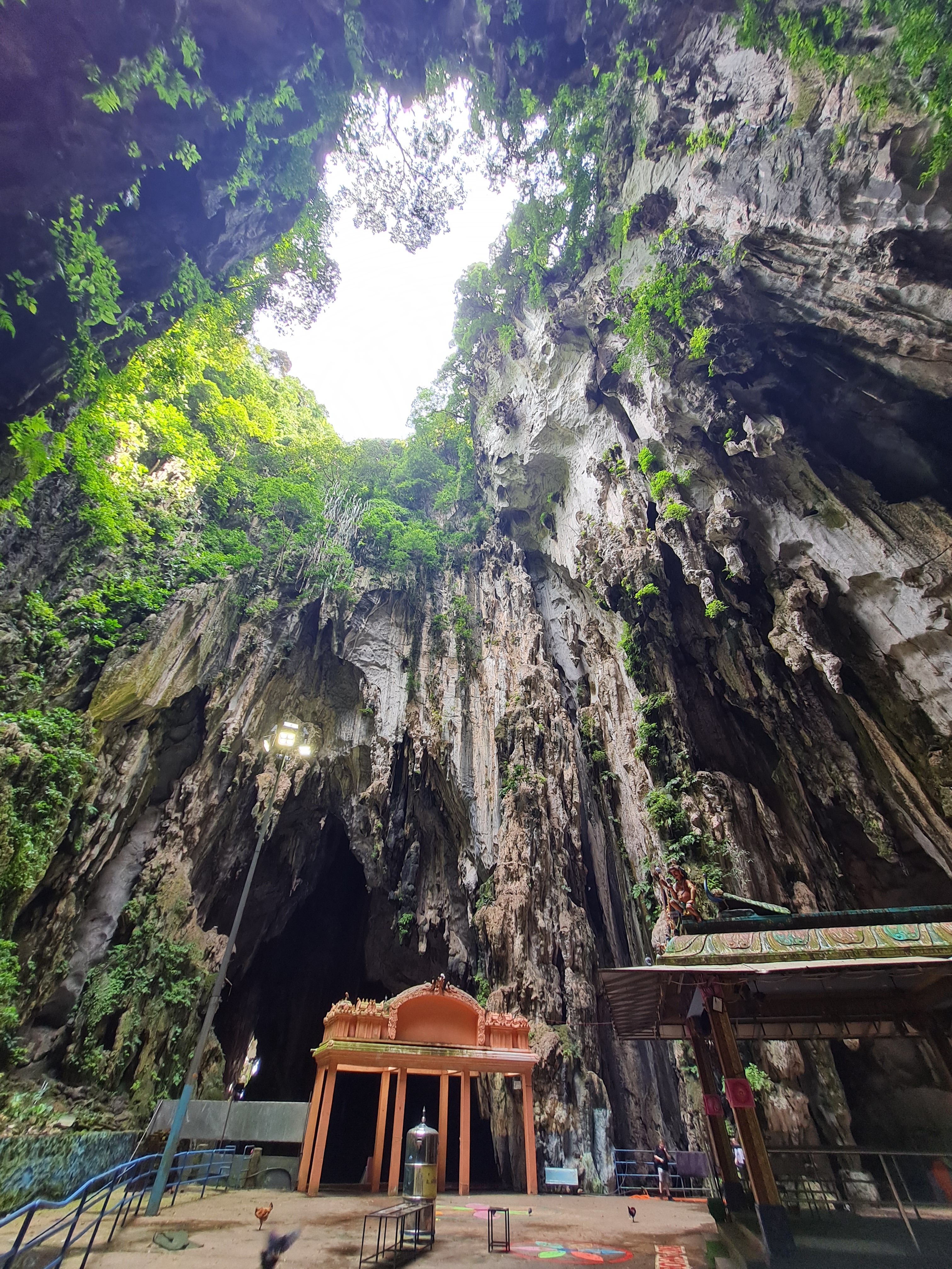 Die über 100 Meter hohe Höhle erreicht man nach der Bewältigung von 272 Treppenstufen und beherbergt den größten Hindutempel außerhalb Indens. Nachdem man sie bestiegen hat, steht man in der von Schreinen, Statuen und Wandbildern gezierten gigantischen Berghöhle, durch deren vereinzelter Deckenöffnungen die Sonne hereinstrahlt. Dazu tropfte es etwas von der Decke und es hallte das Krähen einiger Hähne von den Wänden ab.