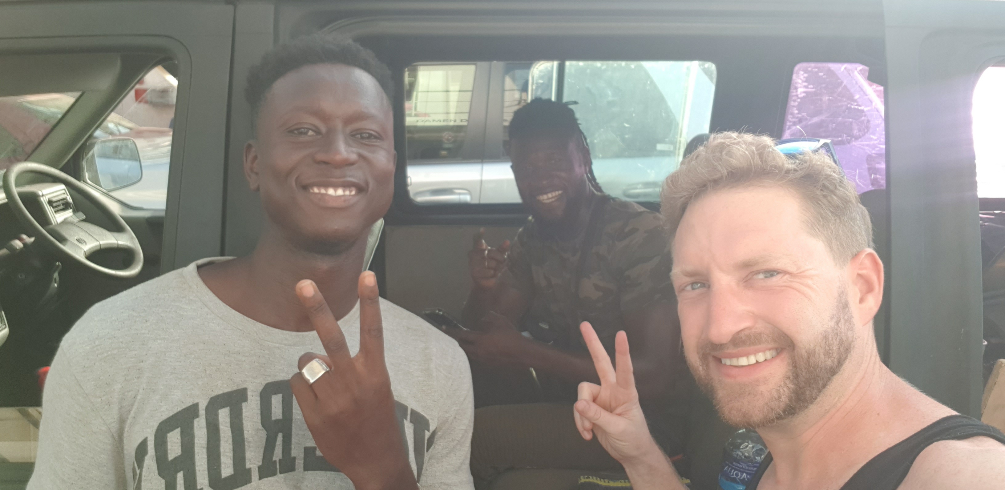 22.10.2021 – Heute ist der Tag meiner Rückreise gekommen. (Ich schreibe erstmal im Futur!) Die Koffer sind so gut wie gepackt. Eingecheckt bin ich. Das Online-Formular zur Ein- und Durchreise für Belgien ist ausgefüllt. Meine Rechnungen bezahlt. Einen PCR-Test braucht man momentan nicht mehr. Lediglich 1000 Dalasi Flughafengebühr darf ich später noch entrichten. Momentan sitze und schwitze ich nochmal auf der Veranda im Patta Patta mit meiner Tasse Kaffee, bevor es abermals zum Strand für eine frische Brise und meiner letzten Mahlzeit geht. Sam wird mich um 15:30 Uhr abholen, obwohl mein Flug erst um 19:20 Uhr geht, weil der Verkehr leider unberechenbar ist. Janko kommt zuvor auch noch vorbei, um Geld für Baumaterial, welches mir Susi übergeben hatte, und das Auto bei mir für den nächsten Ofenbau in Musas Compound abzuholen. Ismaila hat sich noch telefonisch von mir verabschiedet und Solomon persönlich.