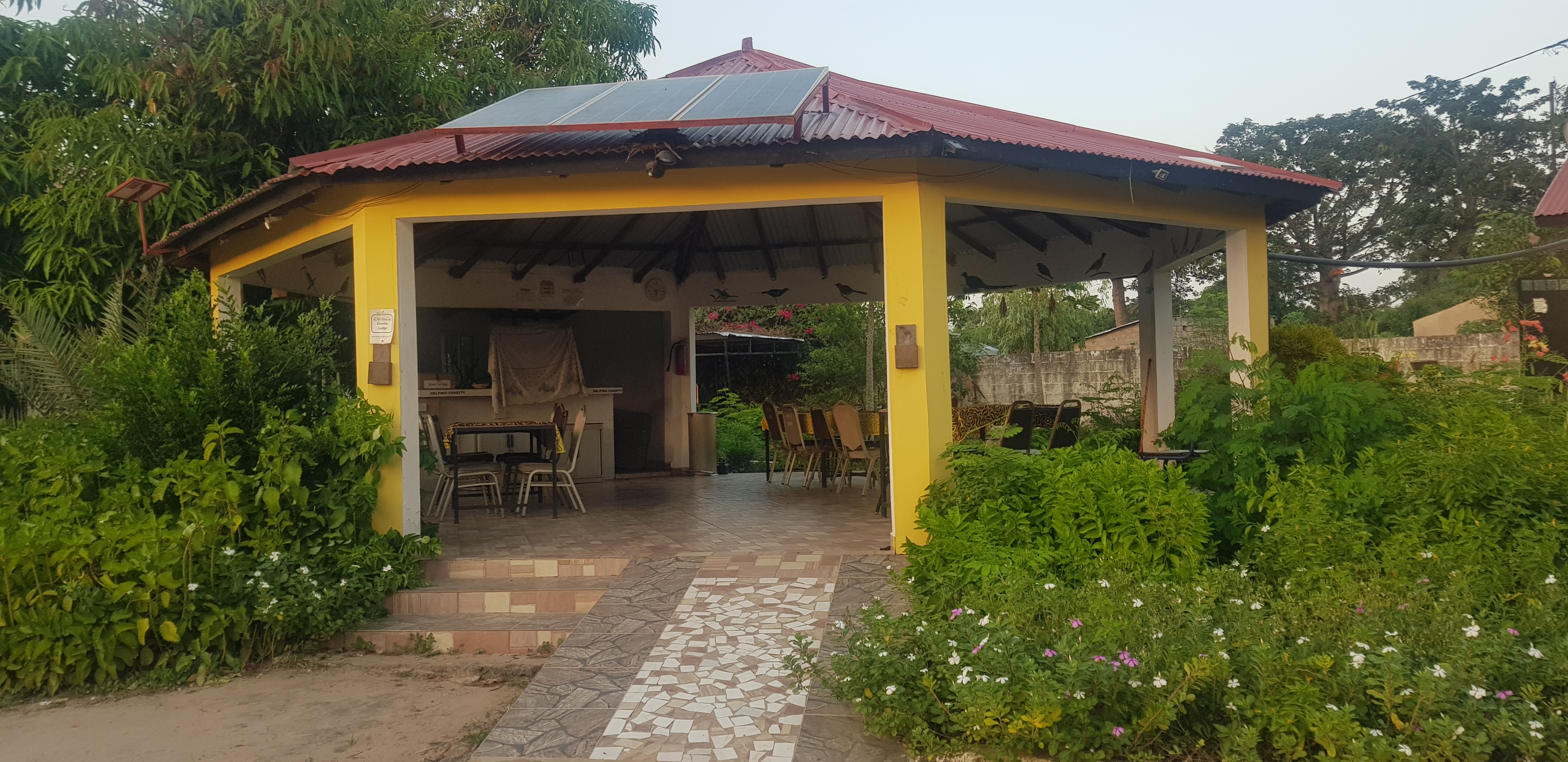 Und weil ich daraufhin immer noch nicht heim wollte, pflanzte ich mich erneut auf einen Cafe ins Poco Loco und mit Einbruch der Dunkelheit zum Abendessen ins Solomons, von wo aus ich meine Sundownergrüße an Luisa B. schicke, die nochmal bei der Spendenaktion nachgelegt hat, worüber wir uns sehr freuen. Unsere Endabrechnung ist bei 2554 Euro, ausgenommen den Gebühren von Facebook für die Bereitstellung der Plattform. Alles, was darüber hinaus mit dem entsprechenden Betreff auf dem Vereinskonto von Family-Health-Projects Gambia e.V. landet, wird für weitere Essensspenden für die Schule in Prince verwendet.