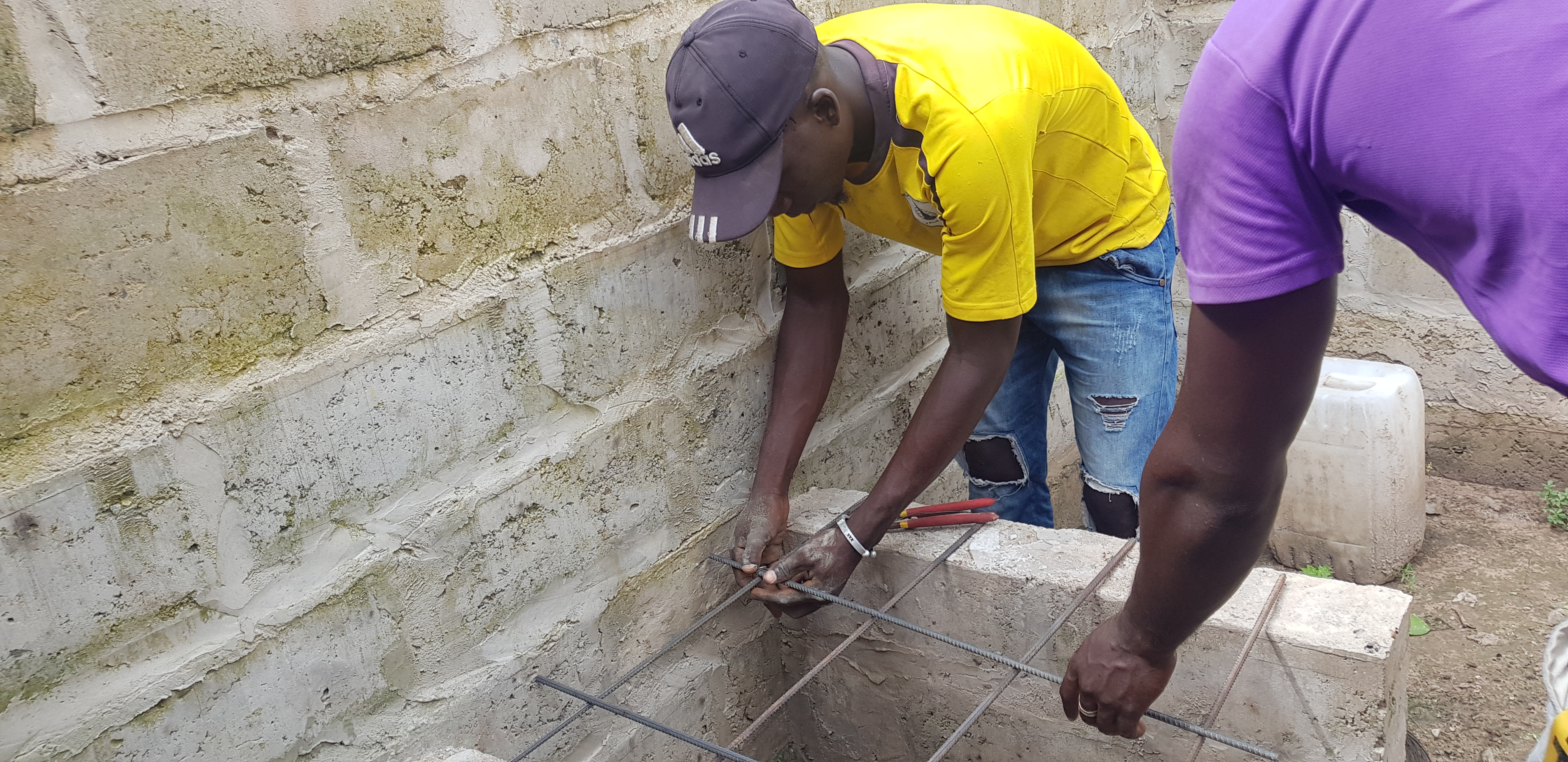 Für das Anbringen des Logos vom Verein Family-Health-Projects Gambia e.V. ließ Susanne Aufkleber gestalten, die wir anbrachten und nebenbei hofften, dass man dann nicht so oft von den Straßenpolizisten angehalten und kontrolliert wird. Pustekuchen! Kaum losgefahren, war es soweit. Der Beruf eines Verkehrspolizisten gleicht hier manchmal eher einer Arbeitsbeschaffungsmaßnahme. Auch sie lassen deutlich gerne ihre Macht spielen und halten notfalls oder wenn es sich ergibt die Hand auf. Man muss trotzdem sagen, dass diese Problematik bereits bei der Führerscheinstelle anfängt. Die Fahrerlaubnis kann man sich einfach kaufen. Nichts desto trotz konnten wir unseren Weg nach Brikama fortsetzen, nachdem wir klarmachten, dass wir kein Taxibus, sondern ein Non-Profit-Unternehmen für Familienhilfe sind. Unterwegs kauften wir Draht und Zement ein, zusätzlich zu den Materialien, die wir im Wagen hatten, und nahmen Musa, der zum Probearbeiten eingeladen war, mit.