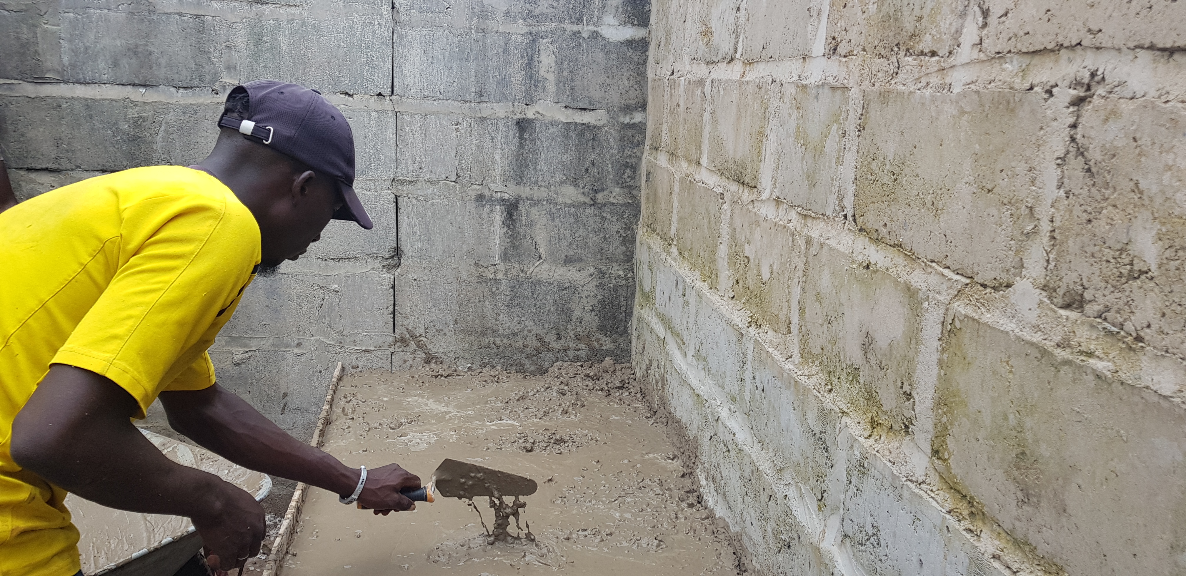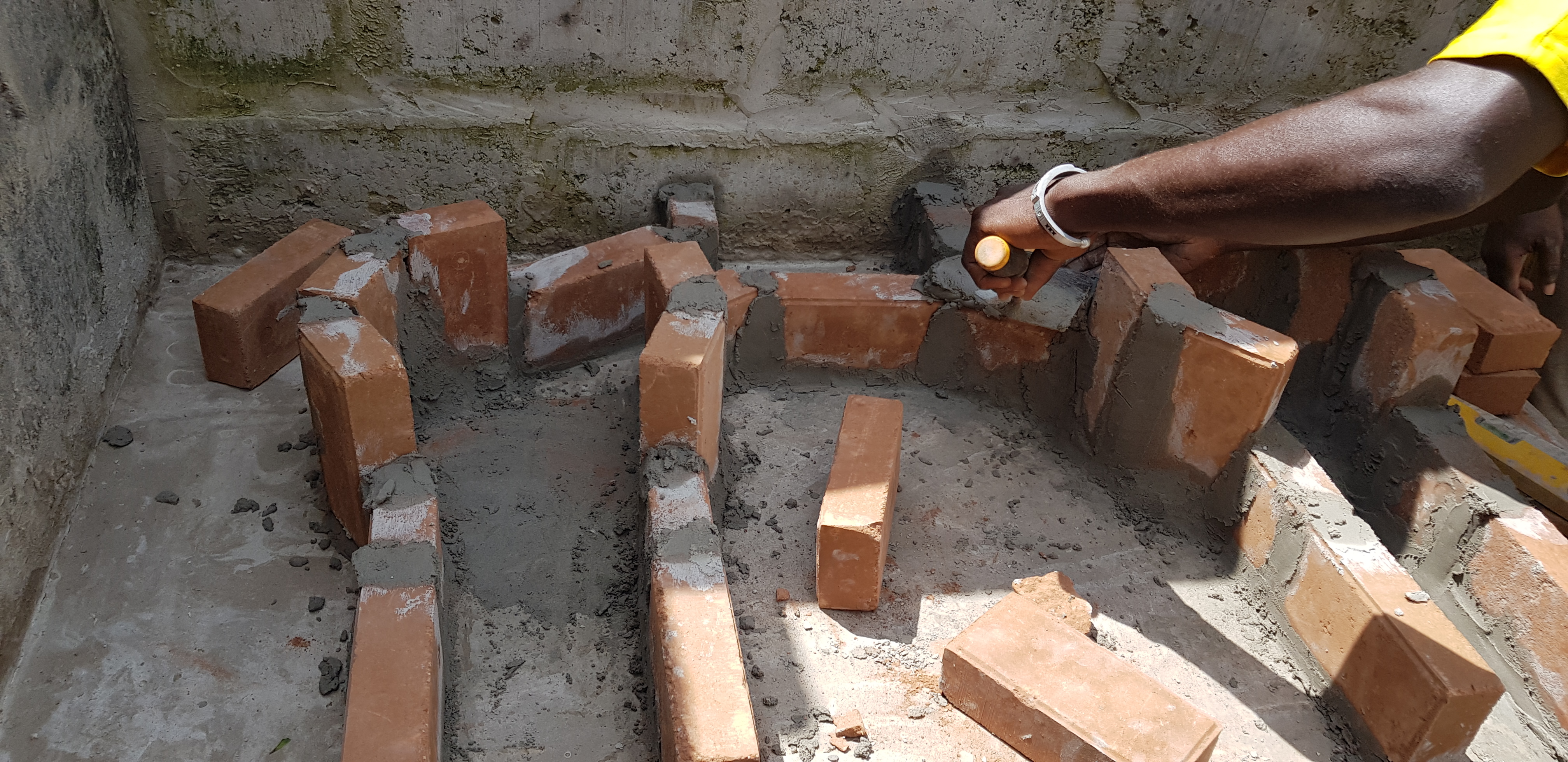 Erneut ging es daraufhin zuerst auf die Baustelle ins Familiencompound nach Brikama, um die Standardküche weiter zu bauen. Das Fundament war ausgetrocknet, weshalb das Formen der zwei Brennöfen begonnenen werden konnte. Daraufhin wurden Verbindungsgänge gemauert und ein gemeinsamer Schornstein angefangen.